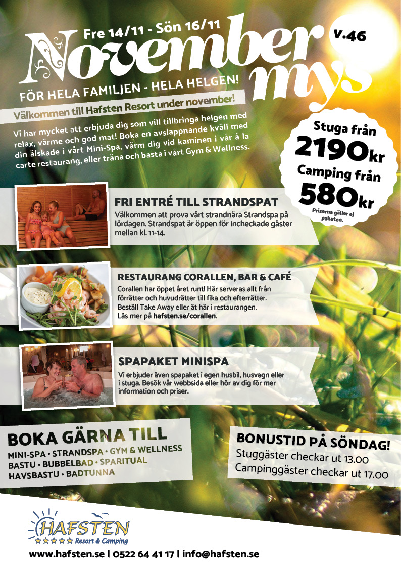 Vi erbjuder även spapaket i egen husbil, husvagn eller i stuga. Du kan kika på alla våra paket här.